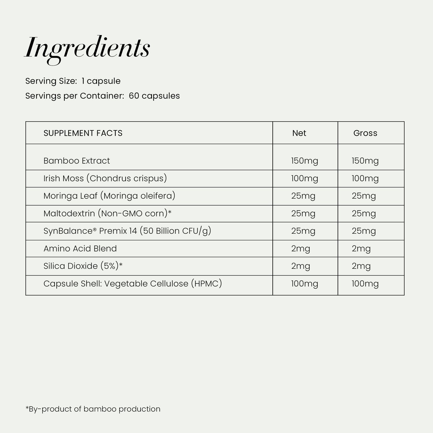 Our Guidance - To help maintain the collagen in your scalp and skin, we utilise a potent combination of silica-rich plant ingredients in our Key recipe formula. This is complimented with the nutrient rich powerhouses; moringa and seamoss to help promote softer, thicker hair growth.